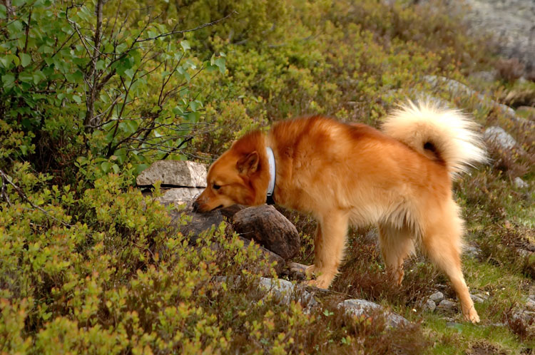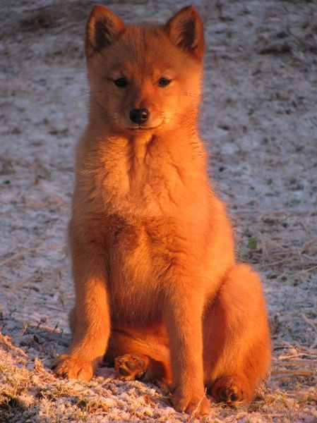 Tuuli was mated in Finland in mid March 2014 with a Finnish dog registered as Ake (but known also by his 'pet' name of "Rehju"). He was suggested as sire by the Breeding Adviser of the SPJ (Spitz Breeds Club of Finland).