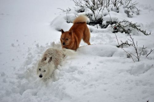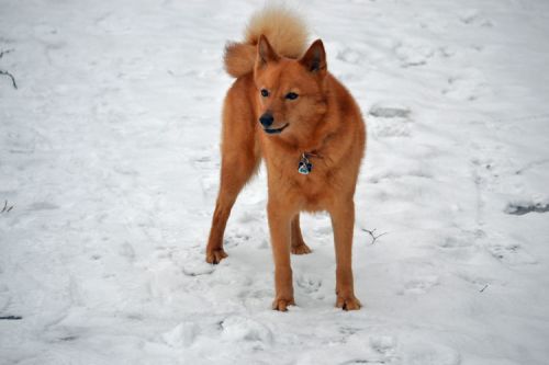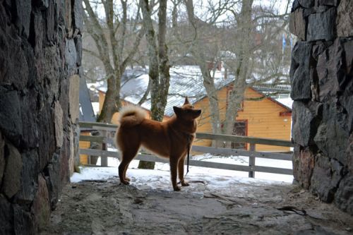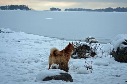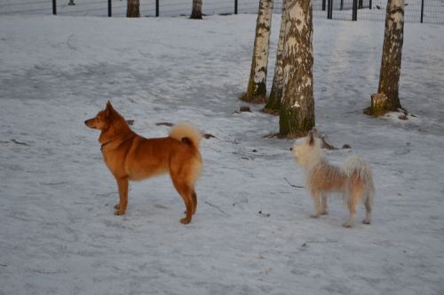 Venla was mated in Finland in early March 2015 with FIN Ch. Karvapörrin Kara (FIN36074/05), a Finnish dog suggested as sire by the Breeding Adviser of the SPJ (Spitz Breeds Club of Finland). View his pedigree here and see some photos of him here. Venla gave birth to their 4 puppies (all girls) on Monday 4th May 2015. These included Kastehelmi and Kuura.